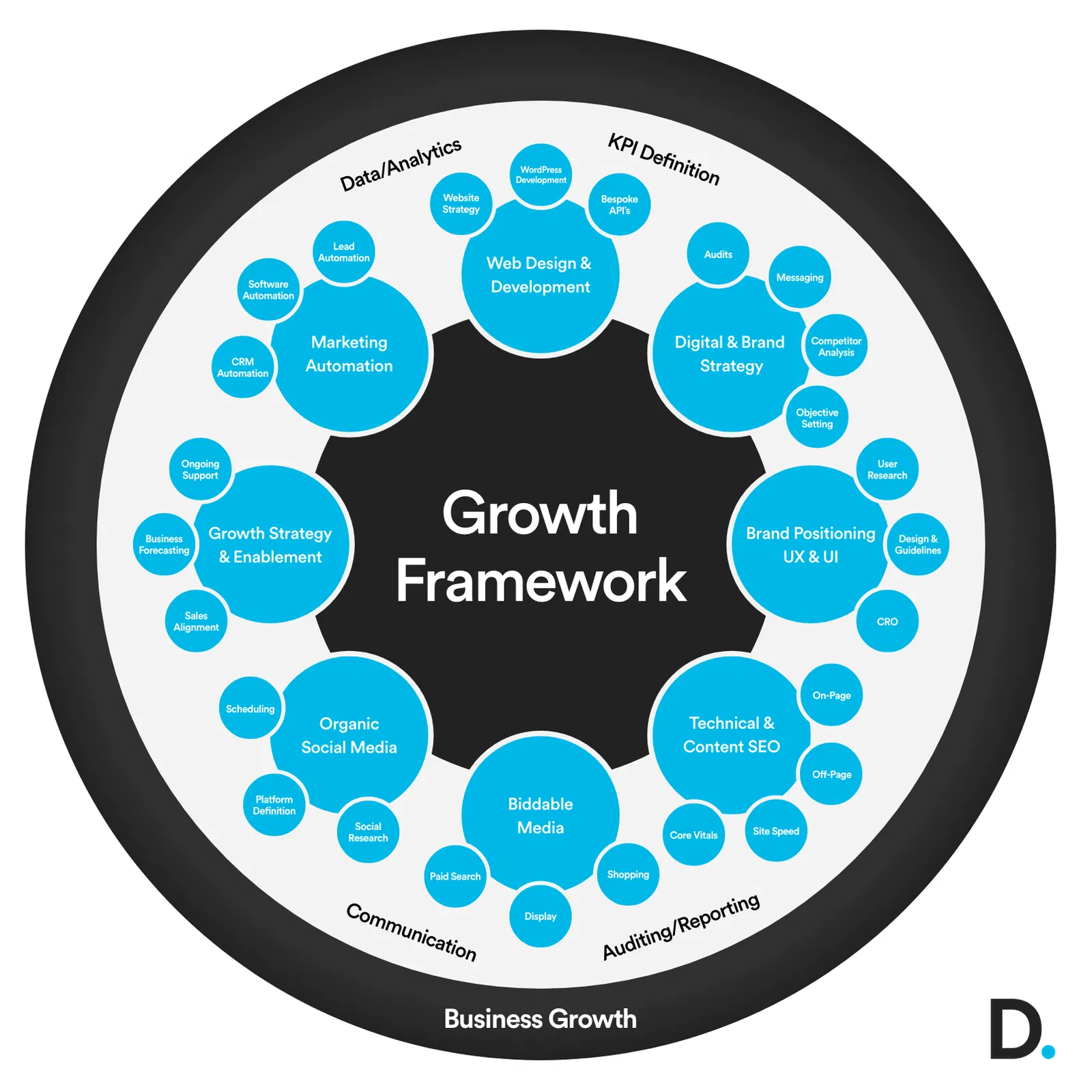 As a full-service Growth Marketing Agency, you’ll work with our experienced in-house team to deliver your complete marketing strategy. Having everyone in one place keeps us accountable and allows you to build great relationships with the people orchestrating your growth plan.