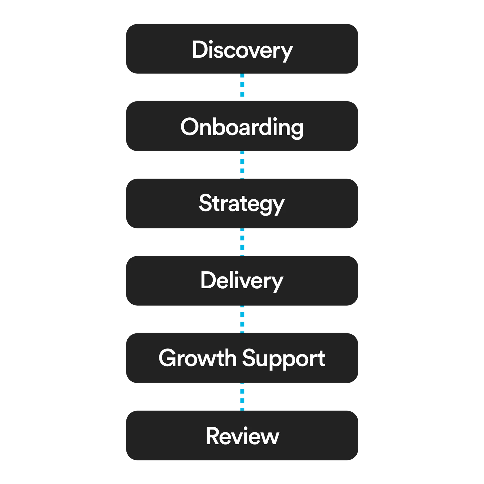 From the beginning of our onboarding process, we’ll deep dive into your business and what you want to achieve in the short and long term. We’ll work with you to create a long-term strategy with achievable milestones and KPIs. We’ll then work continually alongside you to help you deliver the strategy. As we deliver your marketing plan, we can also work as Growth Consultants to ensure your sales, marketing and growth are aligned and on track.